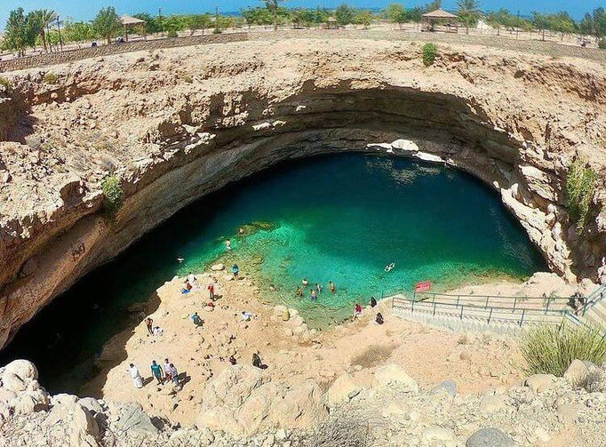 Depart Muscat, approximately at 8:30 AM, Our first stop on this day is Bimmah Sink Hole, a big crater near the sea with a small lake at the bottom, which is believed to have been crated by meteor, our next stop to Fins Beach, It is strikingly white, curiously pebbly, incredibly blue and jaw-droppingly amazing. Then we continue drive to Wadi Shab this Wadi is an enormous canyon gorge that is lined with palm trees and impressive indications of what the power of the water coming down from the mountains can do in nature. With around 35-minute hike up through the canyon Wadi, we arrive at one of several crystal-clear water pools. Tourists can swim on through the warm waters from pool to pool. Eventually, we come to the last pool where an opening among the enormous rocks allows us to swim into an incredible crevice cave with a small waterfall. Inside, the sunlight filters in from the outside, turning the water into a beautiful turquoise blue whilst water showers down one side of the cave from the wadi beyond. Our next stop is the Wadi Tiwi photo stop, which is named after Tiwi village at the coast, is a beautiful wadi with the lush plantations giving it a different (certainly greener) feel than many other wadis, then continue drive to Wahiba Sands Desert.