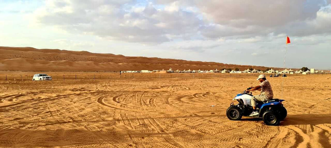 Wadi Fanja Photo Stop – Bedouin House – Camel Ride – Quad Bike – Sand Board – Dune Bashing – Wadi Bani Khalid